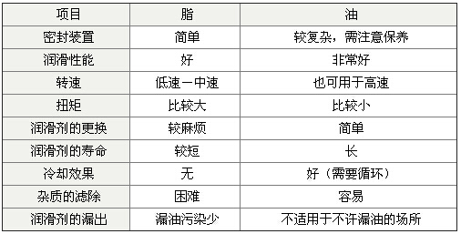軸承的潤(rùn)滑方式主要分為脂潤(rùn)滑和油潤(rùn)滑,其一般性比較如下所示: